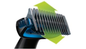双方向前後どちらにもトリミングできる独自設計と 3mm コーム付きで、毛がさまざまな方向に生えていても、しっかりキャッチしてカットできます。処理する毛の量が多い場合は、コームを付けてあらかじめトリミングしておくことをお勧めします。
